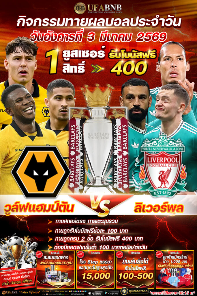 ลุ้นรับโบนัสเครดิตฟรี 400 บาท (03/03/69)